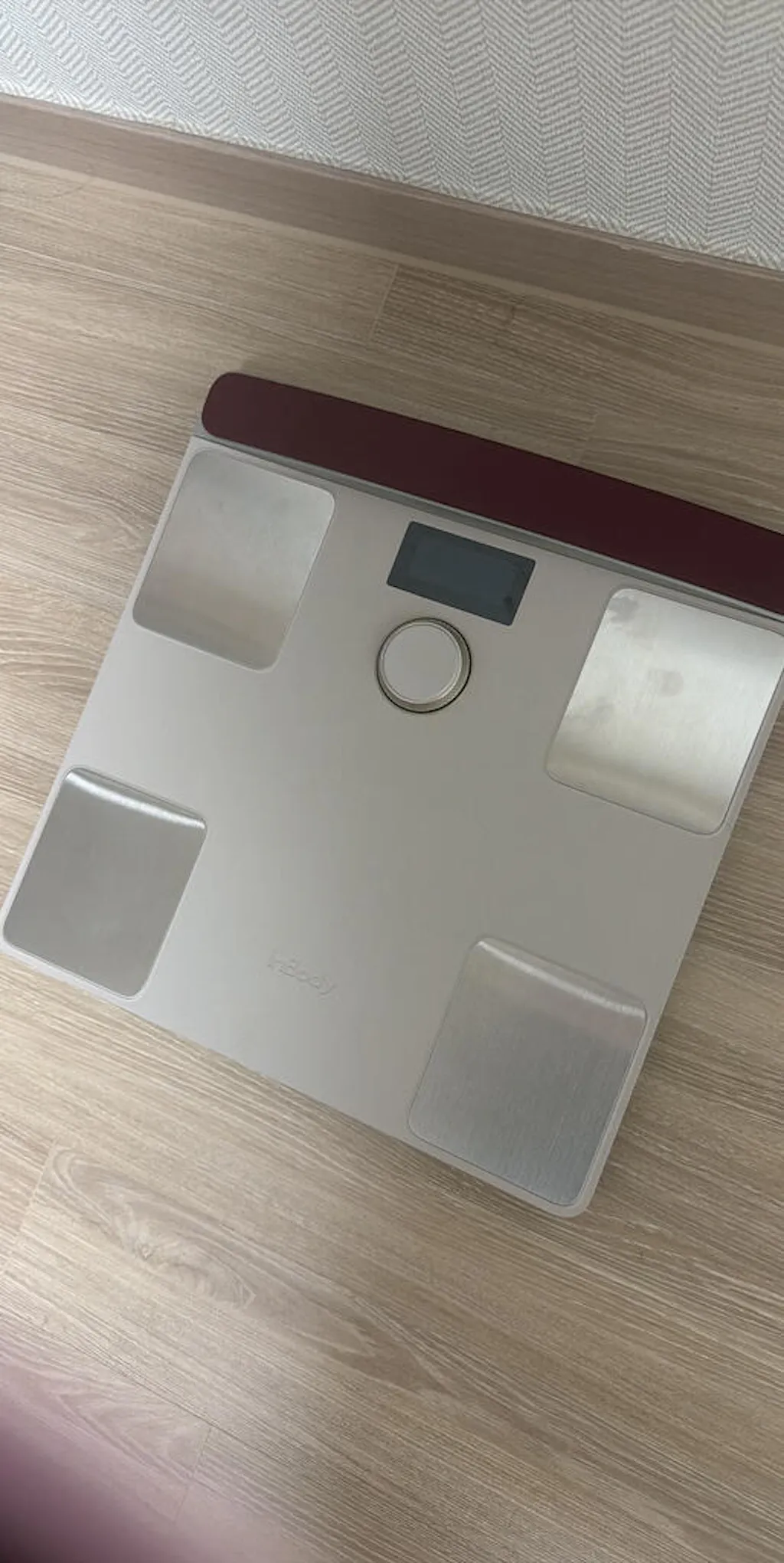 First of all, the design is beautiful. I chose the beige color, and instead of a dull tone, it’s a calm, high-end sand beige that blends seamlessly into the living room without disrupting the interior. Most scales get tucked away in a corner, but this one is so clean and well-finished that you actually want to leave it out. The H40NWi model in particular feels more refined overall.